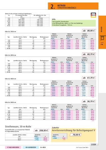 4/60 3000–4000 2600–3500 lichte Öffnung (Breite x Höhe) x m -Preis des Streifentyps