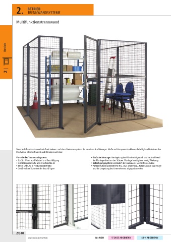• Grenzt Lagerbereiche und Arbeitsplätze ab • Befestigungssystem: verhindert den Ausbau der Elemente von außen