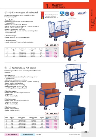 1 + 2 Kastenwagen, ohne Deckel Transport