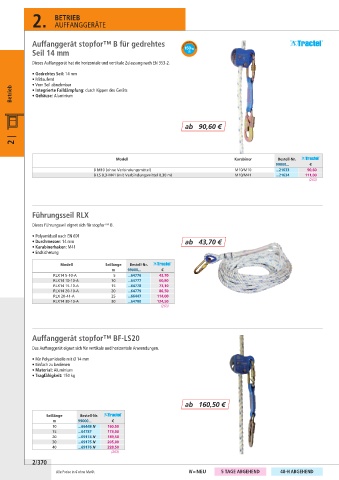 Dieses Auffanggerät hat die horizontale und vertikale Zulassung nach EN 353-2.
