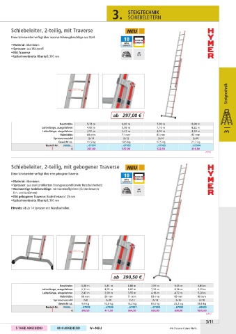 Leiterlänge, eingefahren 2,43 m 2,99 m 3,55 m 4,16 m 4,72 m 5,28 m