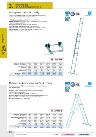 Leiterlänge, ausgefahren 2,98 m 4,10 m 4,94 m 6,06 m 7,19 m 8,31 m