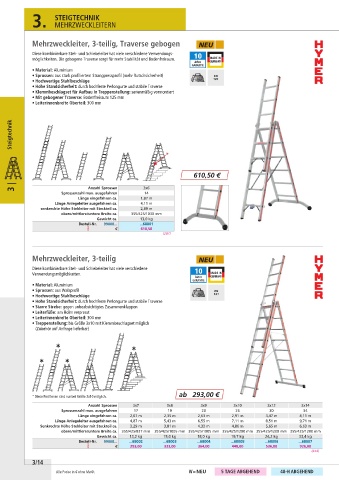 Mehrzweckleiter, 3-teilig, Traverse gebogen NEU