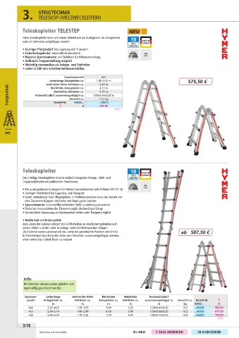 Steigtechnik Packmaß LxBxT zusammengeklappt ca. 1,00x0,56x0,20 m