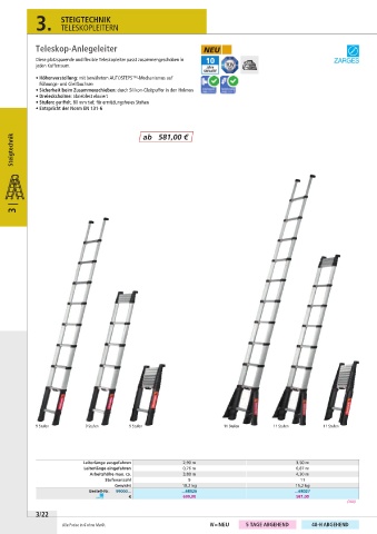Leiterlänge eingefahren 0,76 m 0,87 m
