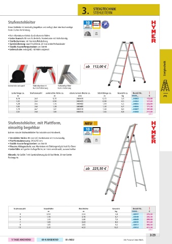 Stufenanzahl Standhöhe Reichhöhe Gewicht Bestell-Nr.