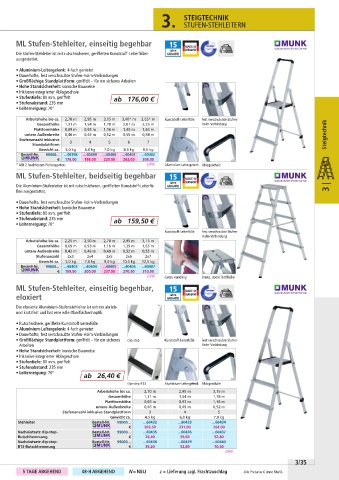 Arbeitshöhe bis ca. 2,70 m 2,95 m 3,15 m 3,40* m 3,65* m Kunststoff-Leiterfüße Fest verschraubte Stufen-
