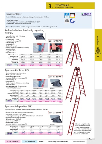 • Sprossen: 28x29 mm, beidseitig geriffelt Leiterschuh Hinweis: Anlegeleitern über