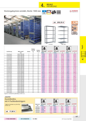 Anbauregal 2500x1000x800 6 1,7 2,3 ...03115 282,00 ...03181 330,50 ...03264 392,50