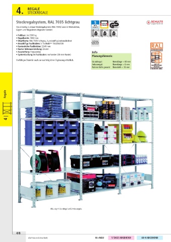 Das einseitig nutzbare Steckregalsystem (RAL 7035) kann in Werkstätten,