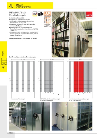 Konventionelles Fachbodenregal. META MULTIBLOC verfahrbare Fachbodenregale, META MULTIBLOC verfahrbare Fachbodenregale,
