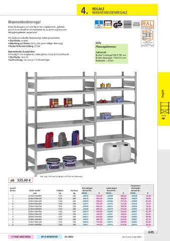 • Allseitig 50 mm aufgekantet, außen gefalzt, Ecken dicht verschweißt Breiten Grundregal 1060/1360 mm