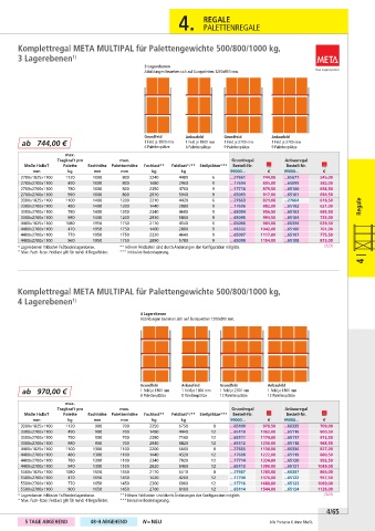 * Max. Fach- bzw. Feldlast gilt für mind. 4 Regalfelder. *** Inklusive Bodenlagerung.