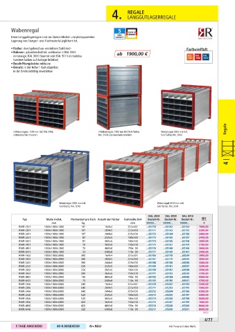 Typ Maße HxBxL Flächenlast pro Fach Anzahl der Fächer Fachmaße BxH Bestell-Nr. Bestell-Nr. Bestell-Nr.