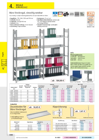 • Regalhöhe: 1750, 2000, 2350 und 2700 mm • Bodenkante: 25 mm hoch