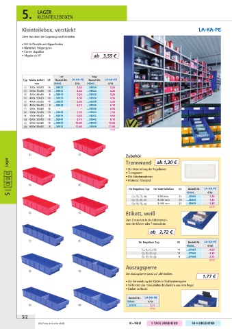 für Regalbox Typ für Kleinteilebox VE Bestell-Nr.