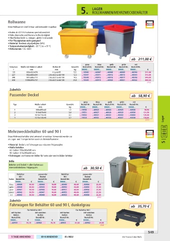 Volumen Maße mit Rädern LxBxH Rollen-Ø Gewicht Bestell-Nr. Bestell-Nr. Bestell-Nr. Bestell-Nr. Bestell-Nr.
