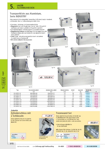 Typ Innenmaße LxBxH Außenmaße LxBxH Materialstärke Inhalt Gewicht Bestell-Nr.