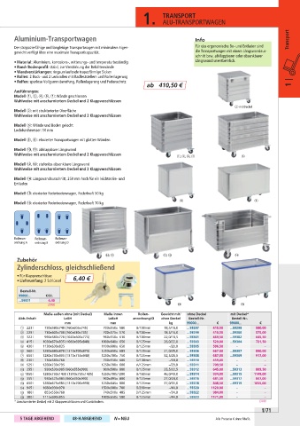 Modell 8, 9: eloxierter Transportwagen mit glatten Wänden