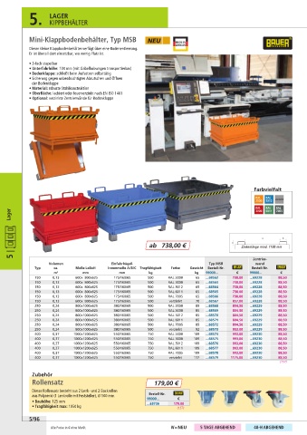 Typ ca. Maße LxBxH Innenmaße A/B/C Tragfähigkeit Farbe Gewicht Bestell-Nr. Bestell-Nr.