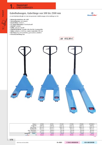 Transport Gabelhubwagen, Gabellänge von 500 bis 2500 mm
