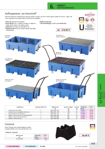 Diese Auffangwannen werden für die Lagerung und den Transport von 200-l-Fässern genutzt. Gegen Öle, Säuren, Laugen und