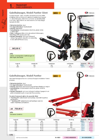 Transport Gabelhubwagen, Modell Panther Silent NEU