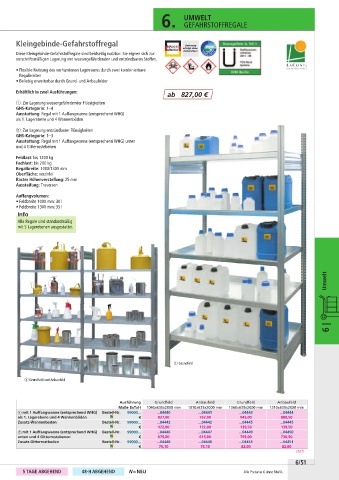 Ausstattung: Regal mit 1 Auffangwanne (entsprechend WHG)