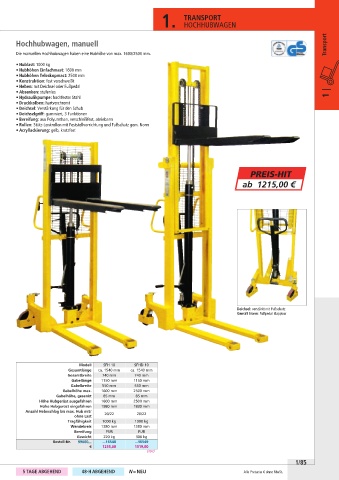 Hochhubwagen, manuell Transport