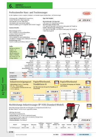 • Mit robusten Euronorm-Filtern (PFN) Werkstattsauger 503 Kipp-Fahr