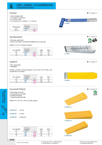 Hinweis: Zum Fällen und Spalten geeignet. Stahlkeile stets nur mit Hartholz- oder