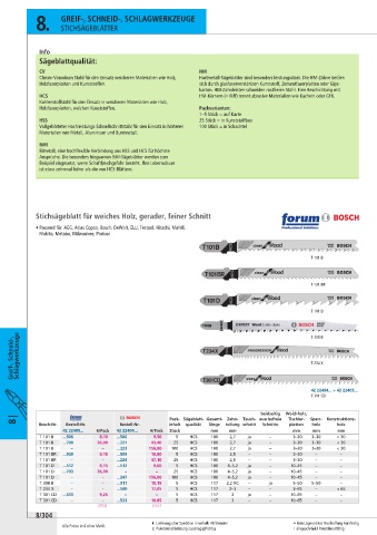 8 | Bosch-Nr. Bestell-Nr. Bestell-Nr. inhalt qualität länge teilung schnitt Schnitte Tischler- Sperr- Konstruktions-