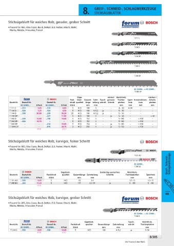 Bosch-Nr. Bestell-Nr. Packinhalt qualität Gesamtlänge Zahnteilung Schnitte Tischlerplatten Sperrholz
