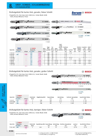 Bosch-Nr. Bestell-Nr. Packinhalt Sägeblattqualität Gesamtlänge Zahnteilung Hartholz, Spanplatten beschichtete Platten