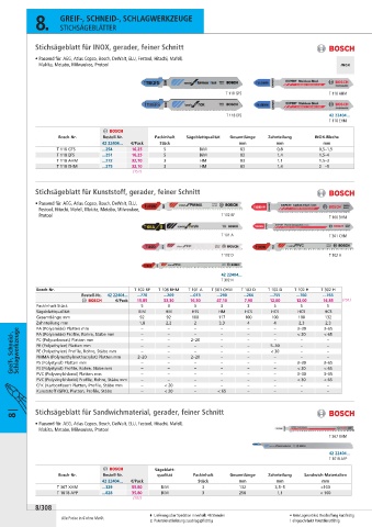 Bosch-Nr. Bestell-Nr. Packinhalt Sägeblattqualität Gesamtlänge Zahnteilung INOX-Bleche