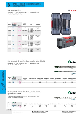 Greif-, Schneid-, Schlagwerkzeuge Bosch- Bestell-Nr. Packinhalt Sägeblattqualität Gesamtlänge Zahnteilung Weichholz, Tischlerplatten Sperrholz Konstruktionsholz