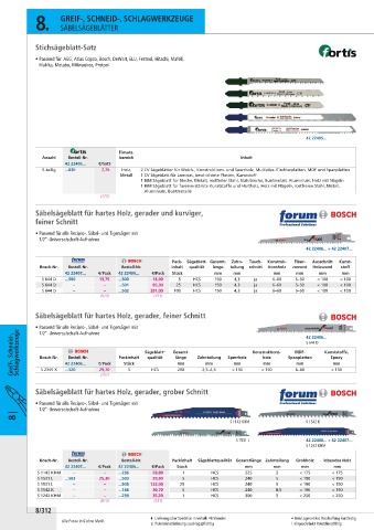 Bosch-Nr. Bestell-Nr. Bestell-Nr. Packinhalt Sägeblattqualität Gesamtlänge Zahnteilung Grobholz lebendes Holz
