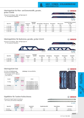 Bosch-Nr. Bestell-Nr. Packinhalt qualität Gesamtlänge Zahnteilung Porenbeton Fiberzement harz (EP)