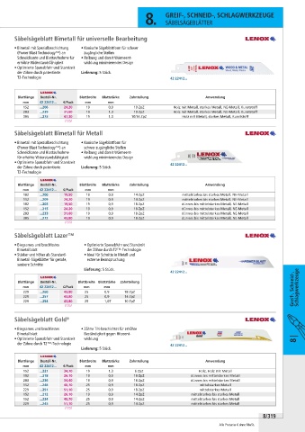 • Bimetall mit Spezialbeschichtung • Konische Sägeblattform für schwer