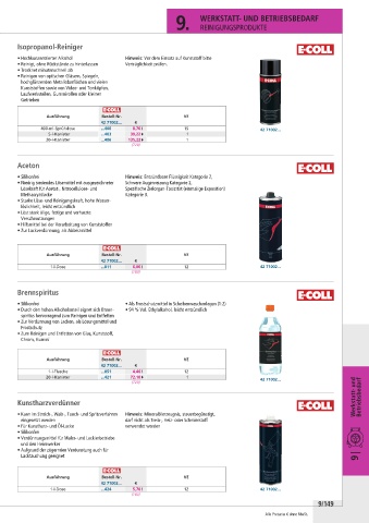 • Hochkonzentrierter Alkohol Hinweis: Vor dem Einsatz auf Kunststoff bitte