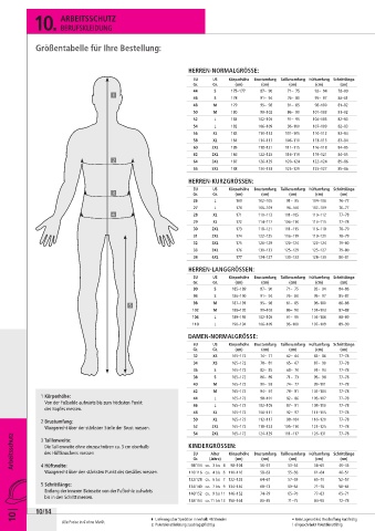 Arbeitsschutz Die Taillenweite ohne einzuschnüren ca. 3 cm oberhalb KINDERGRÖSSEN: (cm) Brustumfang Taillenumfang Hüftumfang Schrittlänge