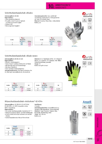 Zulassung/Norm: EN 388 Anwendungsbereiche: Glas- und Metall-