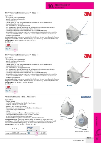 • Schutz durch FFP2 NR D mit 3M™ Cool Flow™ Ausatemventil bis zum 10-fachen des Grenzwertes