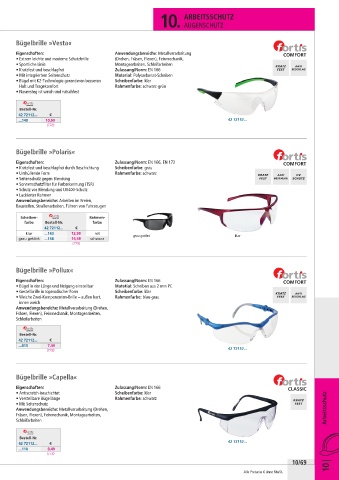 Eigenschaften: Zulassung/Norm: EN 166, EN 172