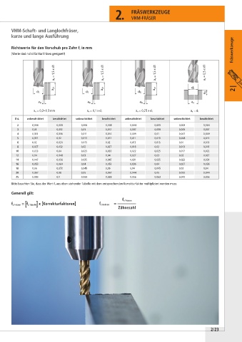 Richtwerte für den Vorschub pro Zahn f z in mm
