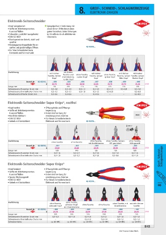 Schneidwerte Ø mittelharter Draht mm 0,2– 1,0 0,2– 1,2 0,2– 1,0 0,2– 0,6 0,2– 1,0 Greif-, Schneid-, Schlagwerkzeuge