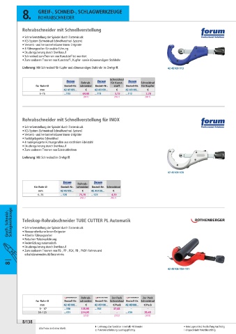 Lieferung: Mit Schneidrad für Kupfer und dünnwandiges Stahlrohr im Drehgriff. 42 45109 113
