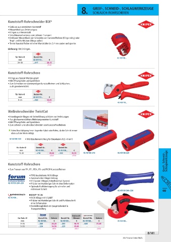 für Rohr-Ø Bestell-Nr. Schere Bestell-Nr. Messer Bestell-Nr. Schere
