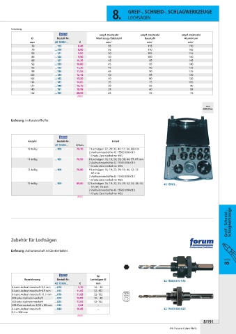 11-teilig ...103 70,50 8 Lochsägen 16; 19; 24; 29; 38; 44; 57; 67 mm