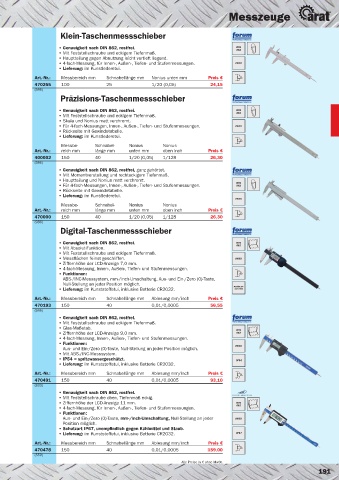Art.-Nr.: Messbereich mm Schnabellänge mm Ablesung mm/inch Preis €